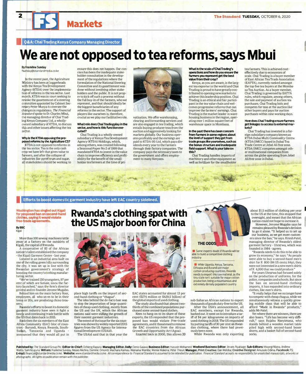 Ktdaltd On Twitter Inthenews The Financial Standard Spoke To Dr Charles Mbui Of Chai Trading Kenya Company Ltd A Wholly Owned Subsidiary Of Ktda To Discuss Issues Affecting The Tea Industry Read